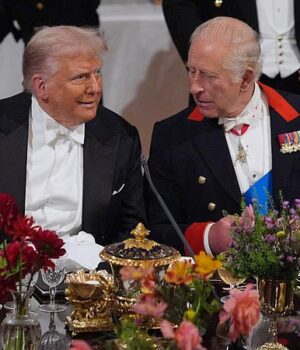 Entende-se que o Rei Charles e a Rainha Camilla contataram “pessoalmente” o Presidente e a Primeira Dama dos EUA após o incidente de domingo. Foto: O Rei Charles e a Rainha Camilla estão com o Sr. Trump e a Sra. Trump em um banquete de estado no Castelo de Windsor em setembro de 2025
