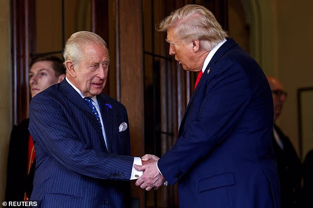 Trump e King na visita de estado do ano passado. Charles e Camilla devem pousar em Washington DC na segunda-feira, antes de um jantar de gala na Casa Branca no dia seguinte.
