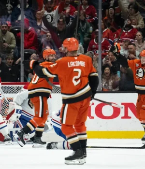 Radko Gudas e Jackson Lacombe também marcaram e Lucas Dostal parou 23 chutes em uma atuação difícil antes de se destacar na disputa de pênaltis. Anaheim conquistou sua 19ª vitória de retorno, igualando Montreal na liderança da NHL.