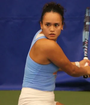 #32 Leyla Britez Risso (TENN) derrotou. #26 Annabelle Xu (VA) 6–1, 3–6, 6–4