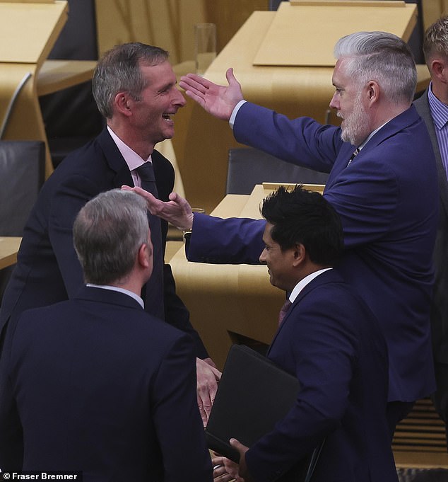George Adam parabenizou Liam McArter, um SNP MSP. Depois que o projeto que morreu com sua ajuda foi aprovado na primeira rodada de votação no Holyorud