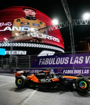 Norris, da McLaren, assumiu a primeira posição no Grande Prêmio de Las Vegas, depois que o tetracampeão mundial Max Verstappen liderou a classificação. Mas o piloto da Red Bull, que venceu a corrida inaugural de Las Vegas em 2023 e seu quarto título consecutivo no ano passado, estava lá momentos antes de Norris o parar.