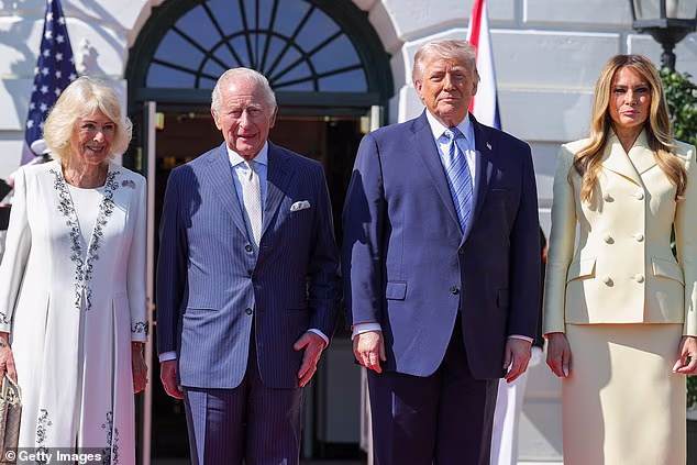O presidente Donald Trump e a primeira-dama Melania Trump (à direita) deram as boas-vindas ao rei Charles e à rainha Camilla (à esquerda) na Casa Branca na segunda-feira, enquanto membros da família real britânica iniciavam sua visita de quatro dias aos Estados Unidos para marcar o 250º aniversário do país.