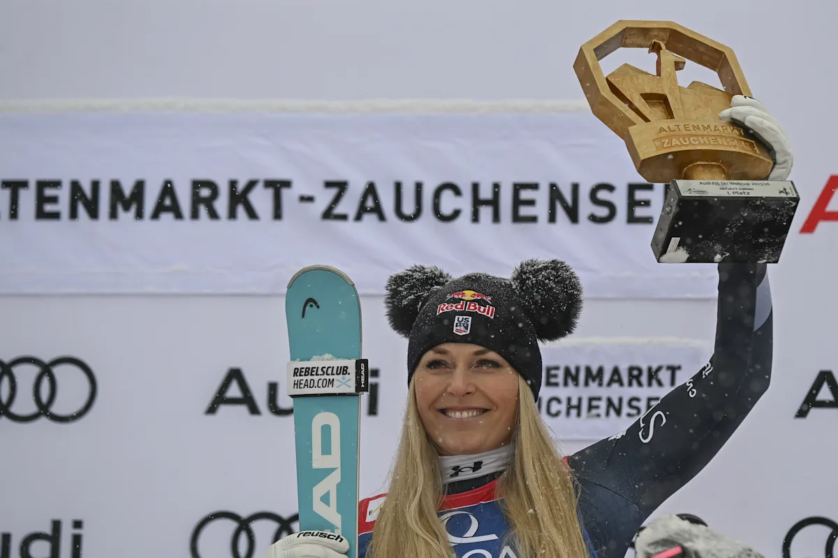 Vonn, de 41 anos, terminou 0,37 segundos mais rápido que a norueguesa Kajsa Vikhoff Lai, conquistando sua segunda vitória na Copa do Mundo de downhill em quatro corridas nesta temporada. A medalhista de ouro olímpica de downhill de 2010 e quatro vezes vencedora geral da Copa do Mundo registrou 131 mph, um dos tempos mais rápidos entre as esquiadoras nesta temporada.