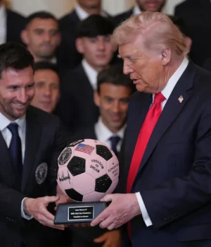 “Hoje estamos entusiasmados em receber o Inter Miami, campeão da MLS Cup de 2025”, disse o presidente Donald Trump em sua introdução. “E tenho o privilégio de dizer o que nenhum presidente americano jamais disse antes: bem-vindo à Casa Branca, Lionel Messi!”