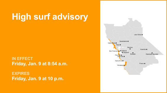 Point Reyes National Seashore, a costa da península de São Francisco e o sul da baía de Monterey e a costa da baía norte, incluindo a costa de Big Sur e o condado de São Francisco, são o foco de um alerta de alta rebentação emitido pelo Serviço Meteorológico Nacional às 8h54 de sexta-feira. Este aviso permanecerá em vigor até às 22h