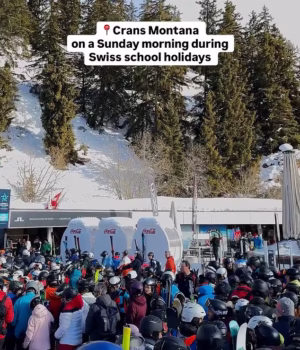 Um vídeo nas redes sociais mostra uma grande multidão reunida em torno de um teleférico em Crans-Montana, na Suíça.