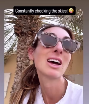 Em sua última atualização, ela compartilhou um vídeo de selfie mostrando seu cachorro andando em direção à câmera: ‘Ei pessoal, Clemmy está passeando com alguns amigos em algum lugar no deserto e eu estou passeando com o cachorro. Eu não queria andar pelo deserto…