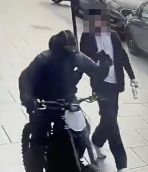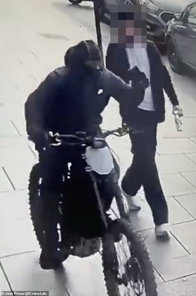 Uma gangue mascarada e-bikes tirou um telefone de uma mulher em um ponto de ônibus
