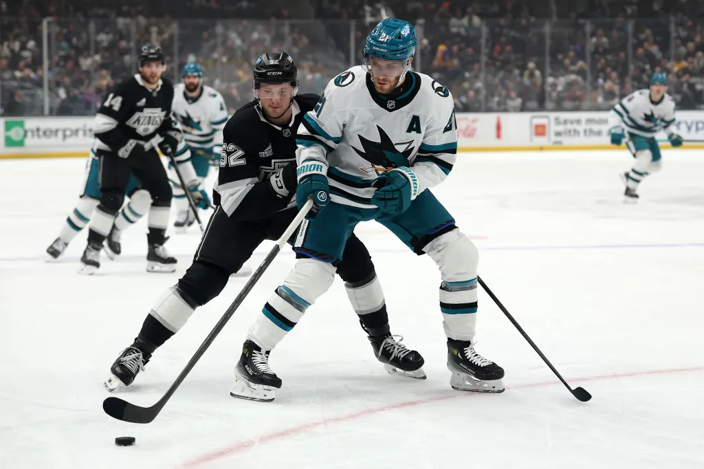 Maclin Celebrini marcou um gol de empate espetacular faltando pouco mais de um minuto para o final do terceiro período, depois deu assistência para o gol de William Eklund aos 3:08 da prorrogação para dar ao San Jose Sharks uma vitória por 4 a 3 sobre o Los Angeles Kings na quarta-feira na Crypto.com Arena.