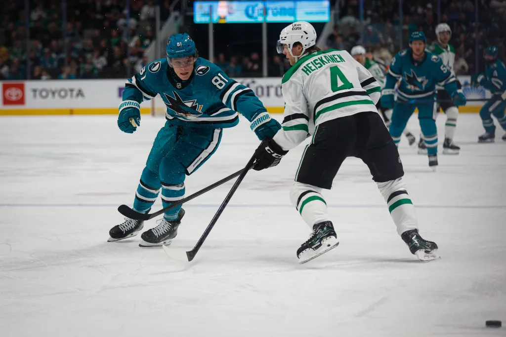 Uma série de 12 jogos em 25 dias teve um início impressionante no sábado, quando os Sharks eliminaram uma desvantagem de dois gols no terceiro período, antes de Tyler Toffoli marcar aos 1:58 da prorrogação para levar o San Jose a uma emocionante vitória de retorno por 5-4 sobre o Dallas Stars, diante de uma multidão de SAP543.