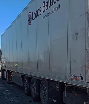 As imagens da cena parecem mostrar grandes partes quebradas da van na estrada, com vidros quebrados ao redor do local do acidente.