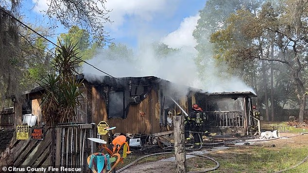 Os bombeiros do condado de Citrus revistaram a casa queimada e confirmaram que não havia ninguém dentro