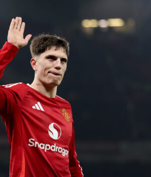 Alejandro Garnaco enfrenta um futuro incerto com o Manchester United. (Foto de Carl Recine/Getty Fig.)