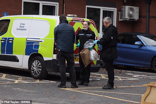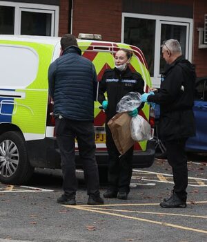 Os investigadores da cena do crime e vários serviços de emergência foram retratados no local