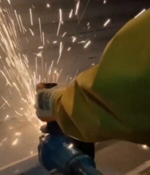 Vídeos postados pelo grupo mostram um grupo de manifestantes vestindo macacões amarelos, luvas e capacetes cortando grandes seções de chapas metálicas no telhado com serras elétricas, enquanto faíscas voam ao redor deles.