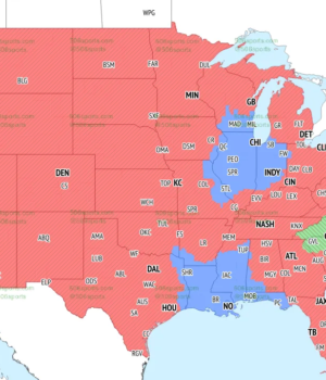 Se você mora na área azul do mapa, pode assistir Bears-Saints localmente às 12h CT na FOX (através da 506sports.com)