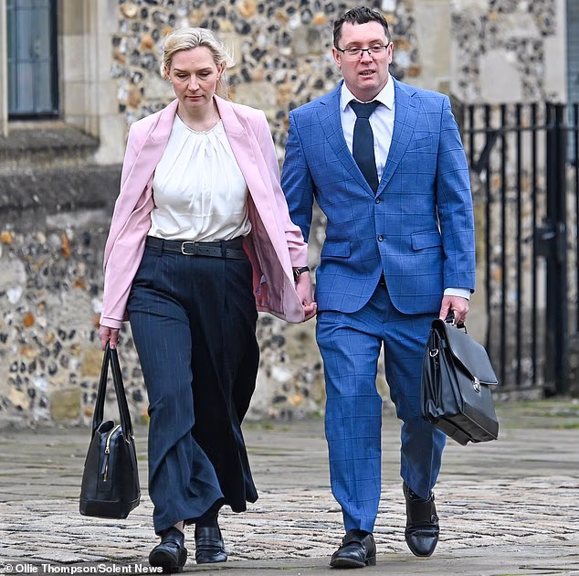Tribus e sua esposa Bea fotografados do lado de fora do Winchester Crown Court em 25 de fevereiro de 2026