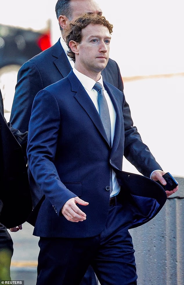 Zuckerberg, 41 anos, chegou ao Tribunal Superior de Los Angeles com um terno azul-marinho enorme que parecia ter saído da prateleira.