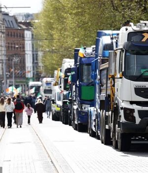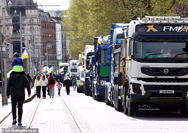Tratores bloqueiam a O’Connell Street no quinto dia de protestos energéticos de sábado