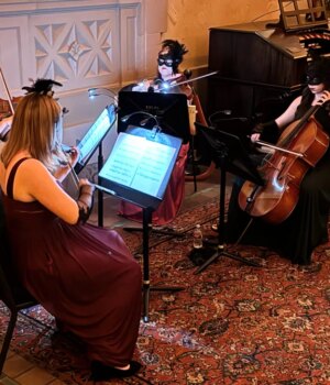 Os apoiadores da Symphony o tinham glam para uma recepção pré-concerto de que a multidão VIP era um toque de mistério que usava máscaras para a maioria das ocasiões. Havia máscaras vinishianas, máscaras de grama do Mardi e algumas máscaras de renda preta – penas, miçangas, cores e ocasionalmente adicionando diversão.