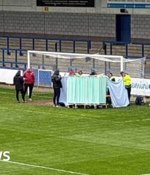 Duas ambulâncias foram chamadas para o CH Stadium em Telford, onde a Kura foi tratada o jogador por trás da tela médica construída pela equipe do clube.