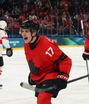 Jogando ao lado de dois dos maiores artilheiros da NHL, Celebrini marcou um gol e uma assistência na sexta-feira, na vitória do Canadá. Uma vitória por 5-1 Filip Kurashev, atacante da Suíça e dos Sharks, na Arena de Hóquei no Gelo Milano Santa Giulia.