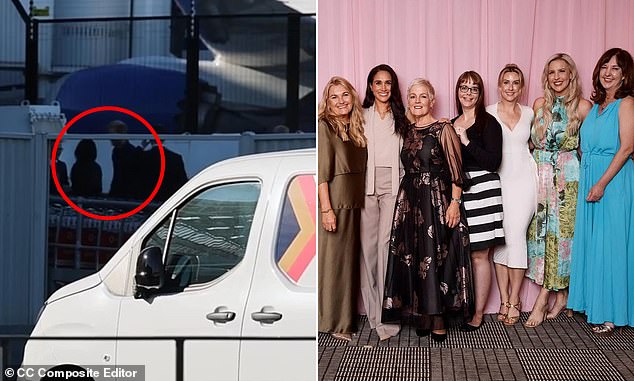 Meghan passou pouco mais de duas horas no retiro na noite de sexta-feira, onde posou para selfies em grupo com convidados VIP selecionados e participou de uma sessão de perguntas e respostas com a podcaster Her Best Life, Gemma O’Neill.