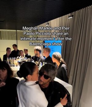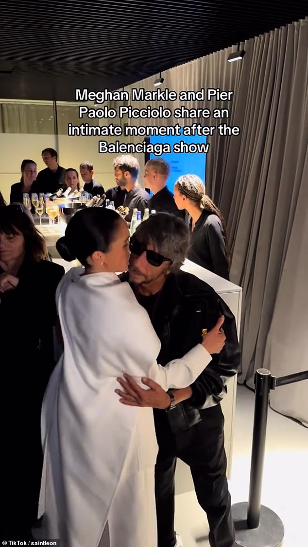 Meghan Merkel compartilhou um beijo assustador com o designer de moda italiano Paulo Picolio, quando ele apareceu na semana de moda de Paris