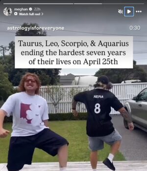 O vídeo, produzido pelos influenciadores Harrison Keefe e Nepia Taqueira-Mita, foi acompanhado de uma explicação de como o movimento de Urano tratou os taurinos, leoninos, escorpianos e aquarianos nos ‘anos mais difíceis de suas vidas’.