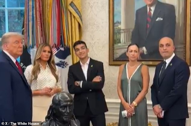 O presidente Donald Trump e a primeira -dama Melania Trump libertaram o Eden Alexander (centro) e sua família (à direita)