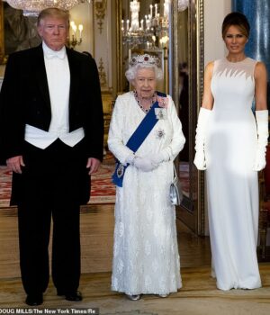 A visita estatal ao Palácio de Buckingham foi realmente inesquecível. Ele escreveu que Donald e eu pousamos completamente no Marine One no Manicure Field e no príncipe Charles e sua esposa Camilla, a duquesa da Cornualha, que nos levou à entrada onde sua grande rainha esperou “, escreveu ele.
