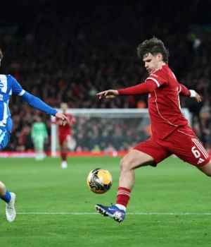 Um trovão ao longe, derrubando a barra, serviu como um aviso prévio. A descoberta veio pouco depois. Kerkez, percebendo a situação instantaneamente, cruzou de primeira para o coração da área. Não foi esperançoso – foi instintivo e preciso. Curtis Jones, fazendo um salto perfeitamente cronometrado desde o fundo, cabeceou para finalizar com força. A mudança foi um estudo de oportunidade, compreensão e confiança.