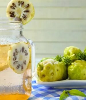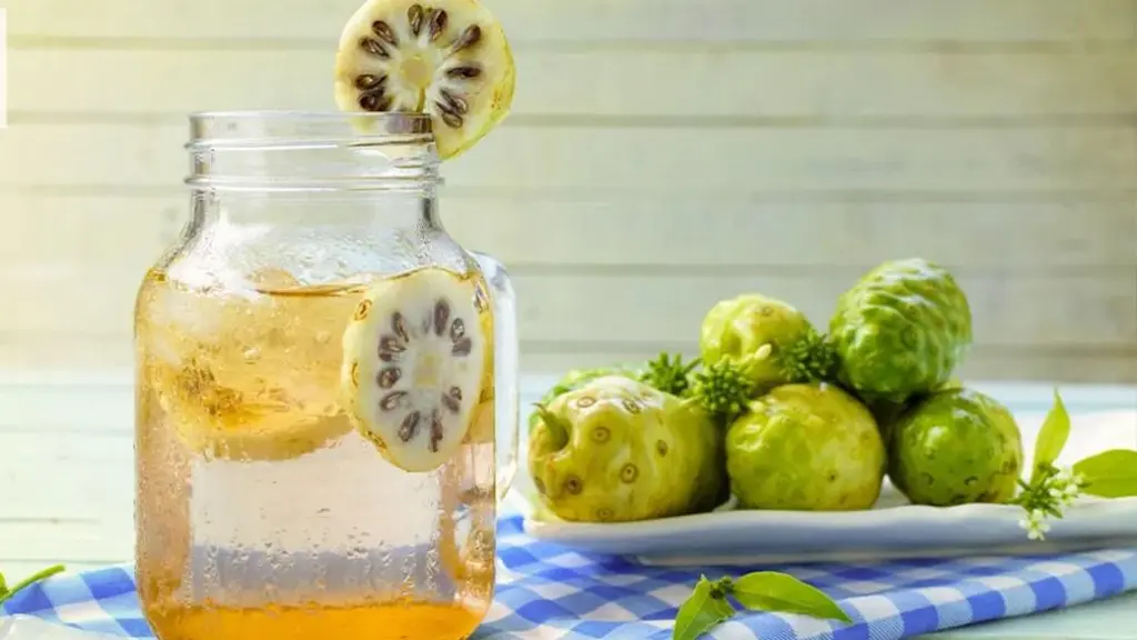 O suco de Noni é uma bebida tropical feita com frutas frescas e maduras de noni. É rico em vitamina C, um poderoso antioxidante e um suplemento benéfico que pode melhorar a saúde das articulações, estimular o sistema imunológico e melhorar a saúde do coração.