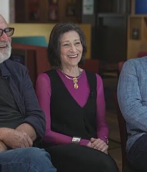 Rob Reiner com sua irmã Annie e seu irmão Lucas durante uma entrevista de 2022 na CBS Sunday Morning