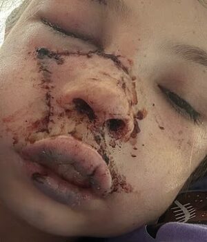 Uma criança andava na coleira com um Blue Heeler antes de perder o controle do cachorro, que se lançou sobre a menina e agarrou seu rosto – causando o corte de seu lábio.