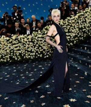 Uma gala de companheiro de monção Segunda -feira começou com uma tendência de verdade a um tema do Taxdo Quar and Menswear: Emma Chamberline e outras fêmeas dos vestidos de riscos.