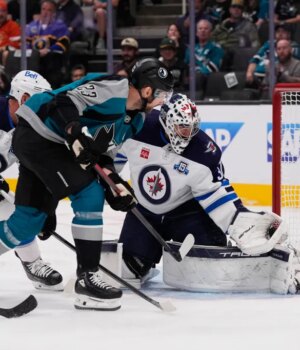 Início Desporto Michael Misa e San Jose Sharks venceram Winnipeg Jets e Connor Hellebuyck