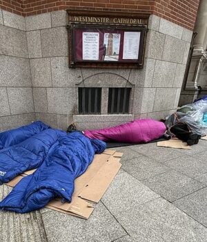 Migrant Shibir Tekover, da Catedral de Westminster: os abrigos para sem -teto estão ficando difíceis ao lado do marco de Londres todas as noites porque as fotos urina em seu público e despejam as flores em seu público
