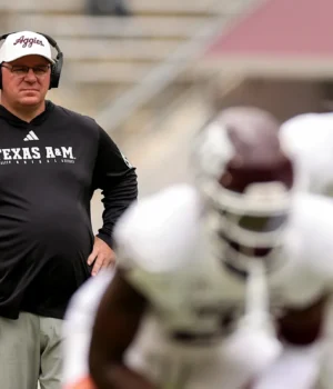 Início Desporto Mike Elko elogiou vários calouros da Texas A&M que pareciam “confortáveis”.