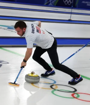 1. A equipe dos EUA busca o ouro no curling de duplas mistas