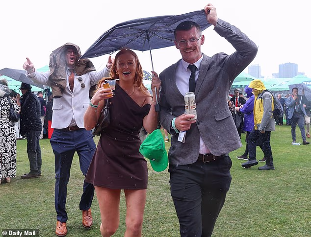 Milhares de pessoas compareceram ao Hipódromo de Flemington para celebrar a icônica Melbourne Cup, festejando a noite toda, apesar do tempo frio e úmido.
