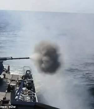 As filmagens mostram que o navio de guerra do ditador está perfurando os militares no Mar Báltico – um grande campo de debate entre a OTAN e a Rússia