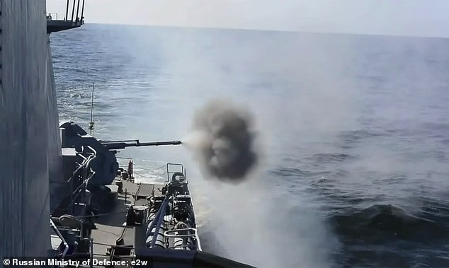 As filmagens mostram que o navio de guerra do ditador está perfurando os militares no Mar Báltico - um grande campo de debate entre a OTAN e a Rússia