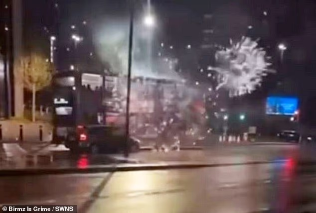 Um bandido imprudente foi flagrado soltando fogos de artifício de um ‘lançador de foguetes’ improvisado em um ônibus em Birmingham.