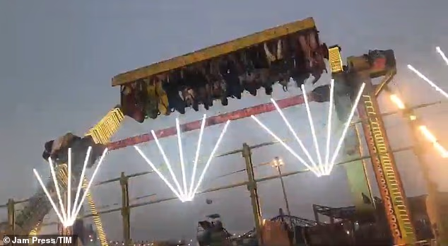 A filmagem horrível mostra o veículo se soltando de um dos braços do passeio enquanto gira.