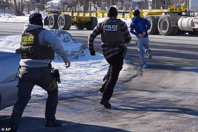 Agentes da Patrulha de Fronteira foram fotografados quebrando a janela do passageiro de um SUV em Minnesota na terça-feira para avaliar supostos imigrantes ilegais dentro do veículo.