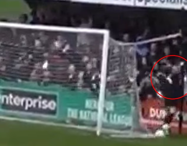 Joe Wright, jogando no gol do Enfield Town no jogo da Liga Nacional Sul contra o Chelmsford City, foi visto virando-se diretamente para os torcedores rivais que estavam atrás dele.