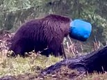 Este é o momento comovente em que um jovem urso pardo foi resgatado na Roménia depois de ter um barril azul preso na cabeça.