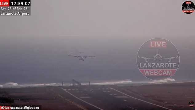 Um porta-voz disse: ‘O voo NT556 da Binter, operando a partir de Gran Canaria com matrícula EC-NGG, estava a aterrar no aeroporto de Lanzarote com mau tempo, quando encontrou uma forte rajada de vento e colocou seriamente em perigo a integridade da aeronave.